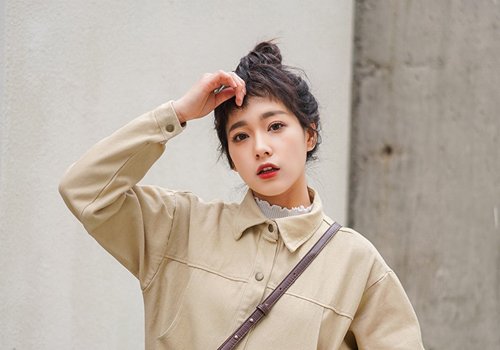 大眼睛樱桃小嘴的娃娃脸少女,有着一头乌黑柔顺的长直发,女生喜欢梳丸子头,但不会把所有头发都聚集在一起,因为露额半丸子头发型凸显女生娇俏少女模样的同时,还非常的淑女哟。