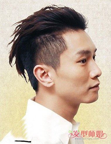 男生帅气的莫西干小背头造型,侧面看上去是如此帅气,额头部分的头发是向后梳,左右两边是剃较短,拥有着阳光帅气的男生形象,个性活力感十足打造。